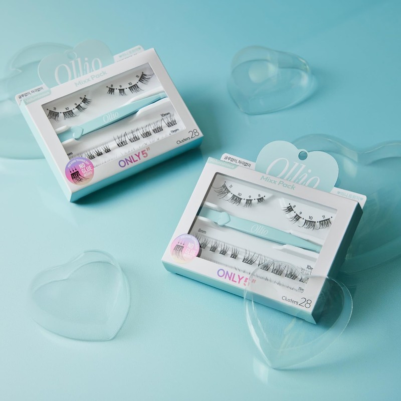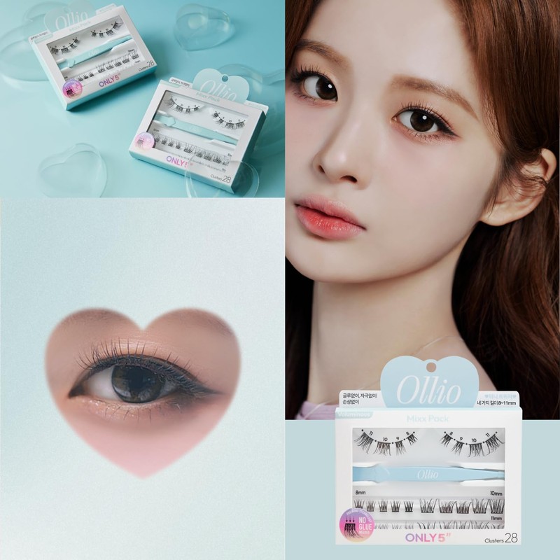 NMIXX Emix Limited Edition Photo Card Starter Kit with Exclusive Tweezer, Ollio Mix Pack, No Glue Required Partial False Eyelashes, 28 Bundle Set (OMP04J)