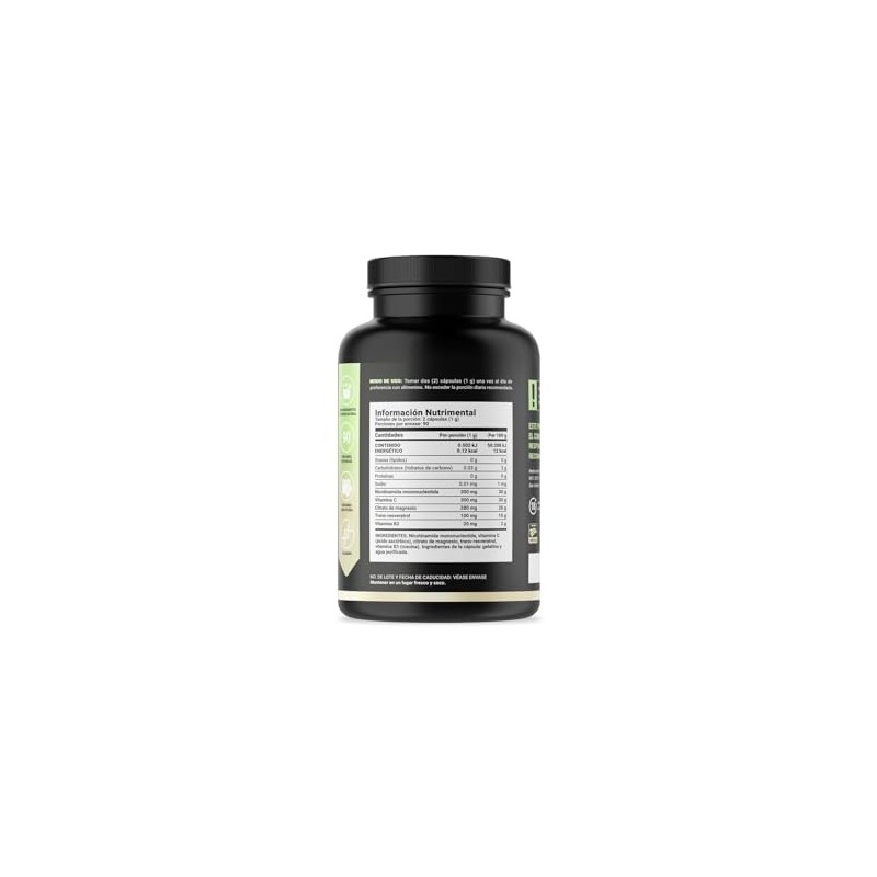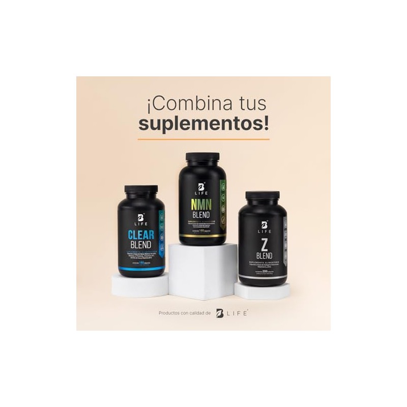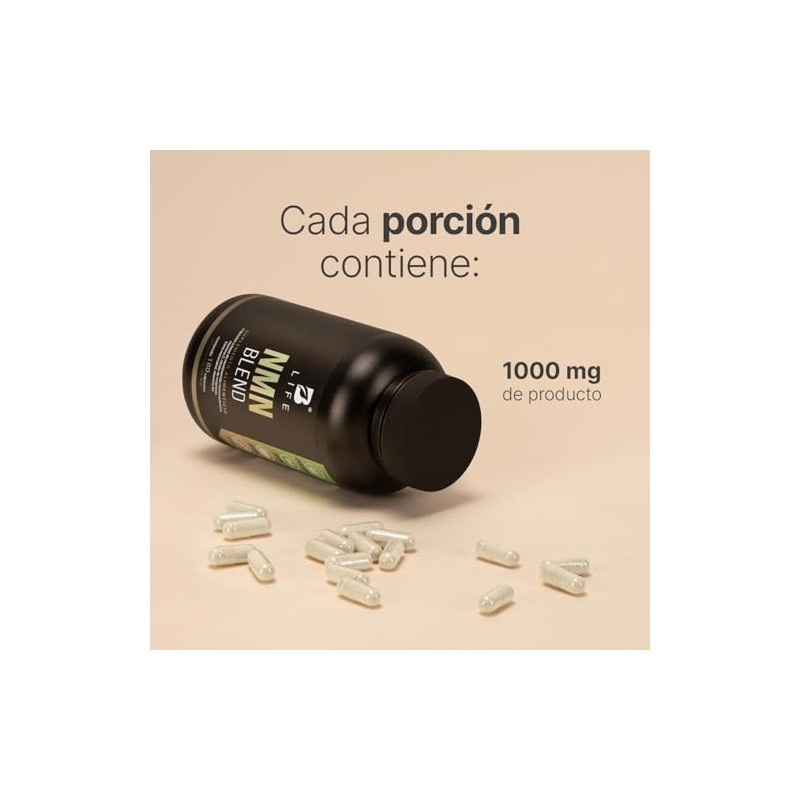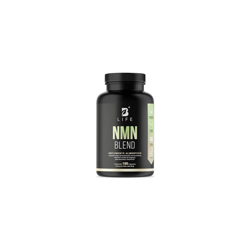 NMN Blend. Precursor de NAD. 180 Cpsulas. 1000 mg por Porcin. Trans-Resveratrol, Vitamina C, Citrato de Magnesio y Vitamina B3. NMN Blend B Life.
