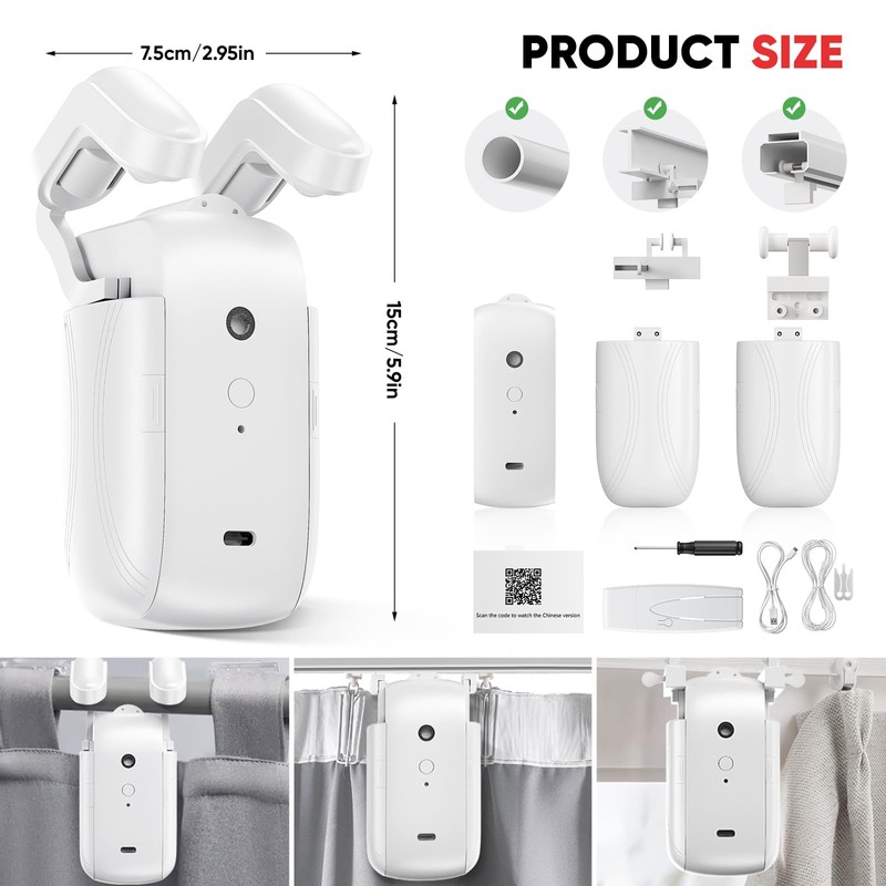 - Comprehensive Compatibility This smart curtain opener is compatible with various curtain rods and styles such as Roman blinds, T-rails and U rails, and supports single-sided curtain control with any device.