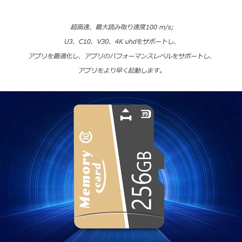 NNBMNB Micro Memory Card for Smartphones, Tablets and More 100MB/s Transfer Rate Class 10 UHS-1 V30 Ultra HD 4K Video Recording -E(256GB) E47