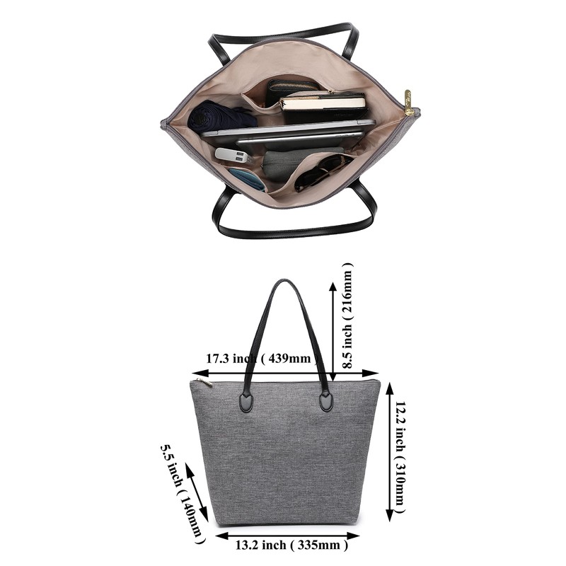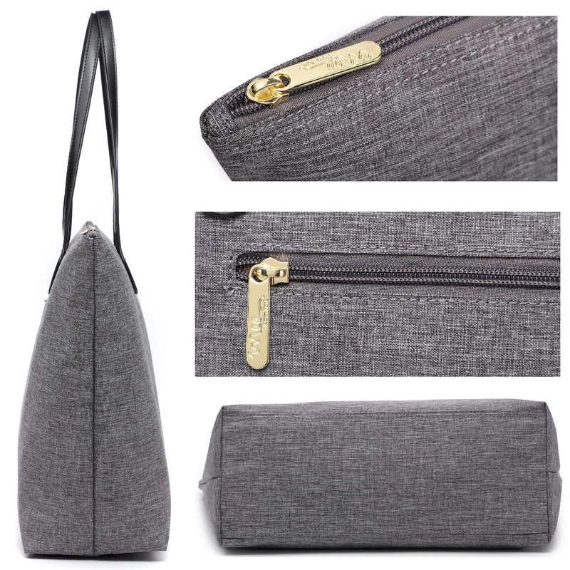 NNEE Water Repellent Light Weight Nylon Polyester Tote Bag Teacher Handbag - Medium, Gray