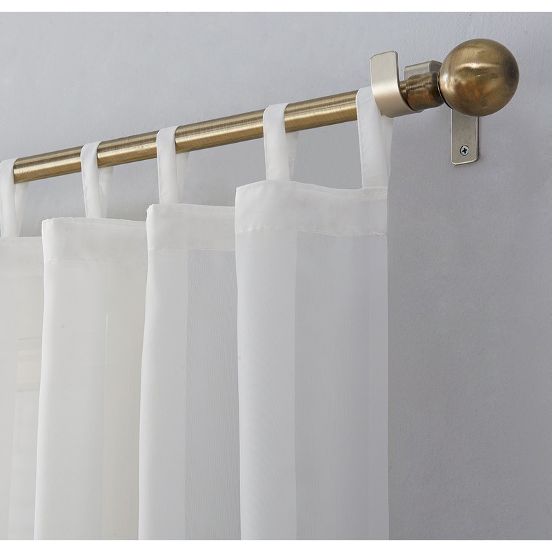 These elegant sheer voile curtains gently capture light and bring elegant beauty to the windows of any living space. Equipped with a built-in tab top for easy hanging on curtain rods up to 1.5 inch in diameter, No. 918 Emily sheer voile curtains can be used alone or as an added layering piece for added privacy or a more lush look. Tie the room together by coordinating with the No. 918 Emily sheer voile door curtain panels for standard door sizes, or No. 918 Emily patio sliding door curtain panels for wider sliding doors or double doors. Machine wash cold on gentle cycle. Use only non-chlorine bleach when needed. Tumble dry on low heat. Use a cool iron as needed.