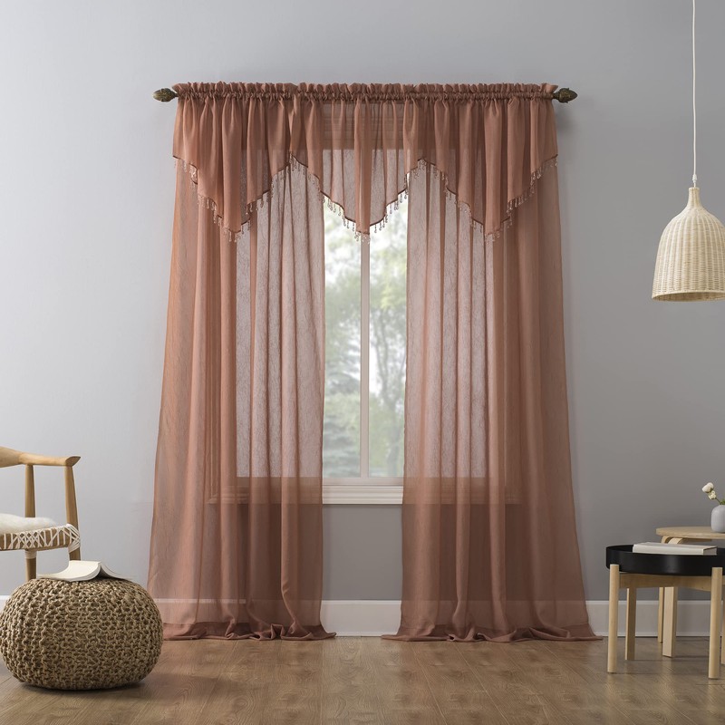 No. 918 Erica Crushed Voile Ascot Beaded Sheer Rod Pocket Curtain 3-Piece Set
