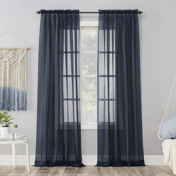 No. 918 Navy Blue Sheer Voile Curtain 59 W x 84 L Machine Washable Light Filtering