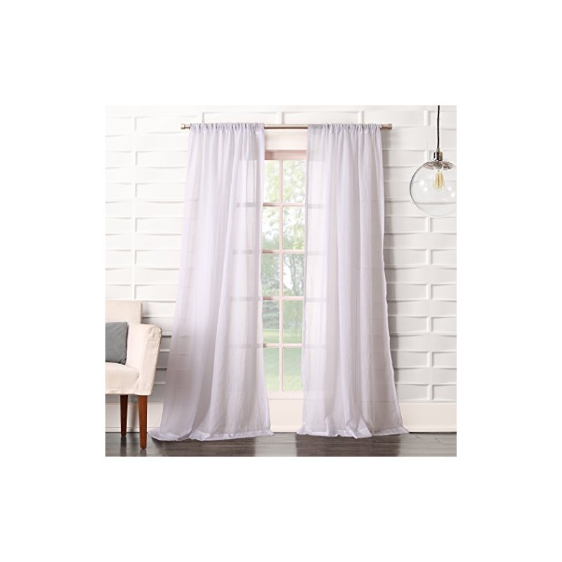 No. 918 Tayla Crushed Texture Semi-Sheer Rod Pocket Curtain Panel, 50" x 84", White