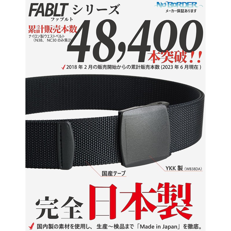 No BoRDER FABLT Belt, Nylon, 1.5 inches (38 mm), Made in Japan - blk