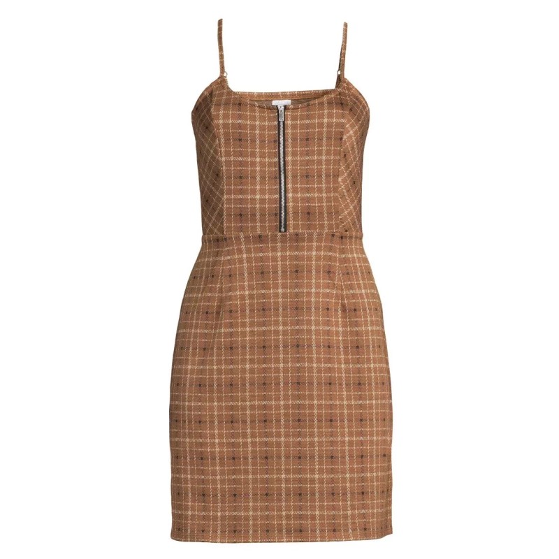 No Boundaries Junior's Sleeveless Brown Plaid Front Zip Dress NWT 2XL (19)