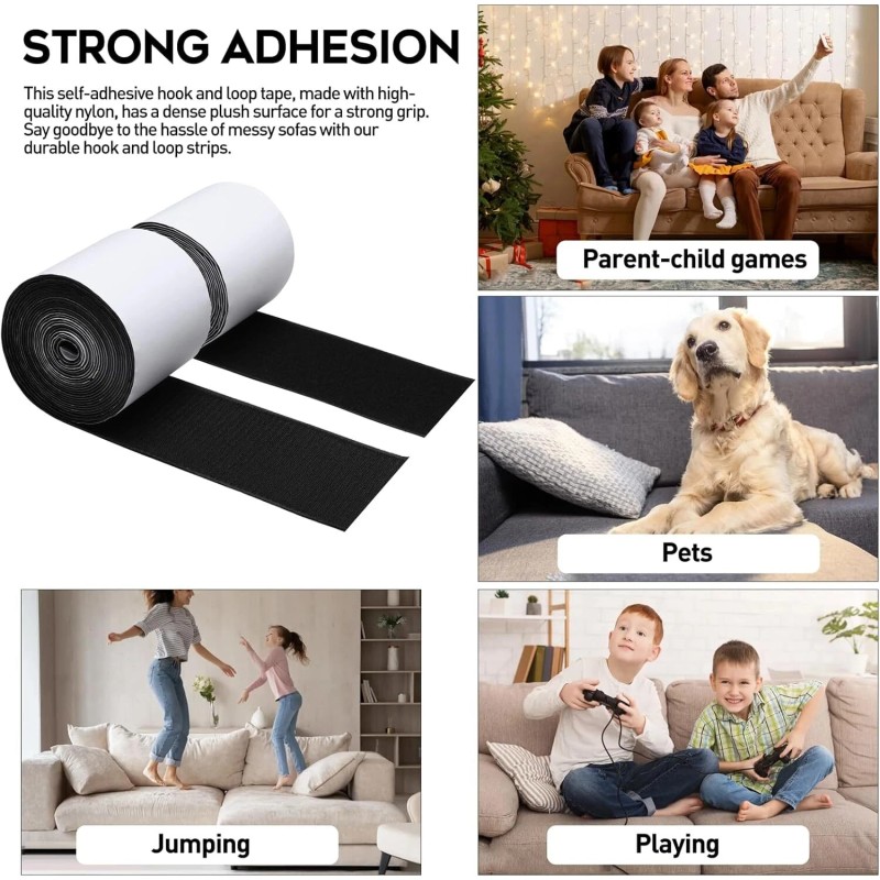 - 【Wide Application】The hook and loop rolls are excellent for keeping couch cushions from sliding and are also beneficial for a variety of temporary solutions, such as organizing remote controls and sockets, wall mounting, securing rugs, and attaching fabric. Additionally, they are a great choice for securing mattresses, hanging photo frames, and mounting curtains. The sticky back provides versatile assistance for numerous indoor and outdoor applications.