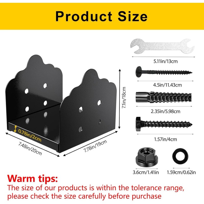 - 【Easy to Install】 After confirming the size of the wood post, just need to fix the nuts and screws. Our post bases are secured with carbon steel hex nuts for greater durability. Please confirm the size of the wooden post before you buy it
