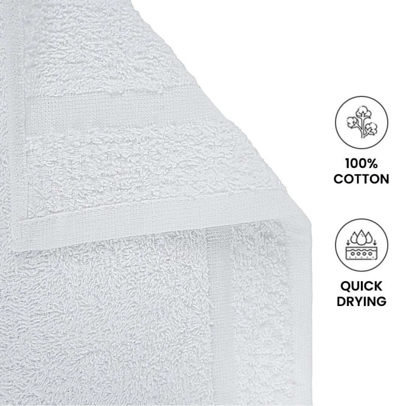 Embrace yourself in the comfort of the Mainstays Value 10-Piece Towel Set. Made from soft, absorbent 100% cotton, these towels dry quickly . The new design features a popcorn textured border for a fresh look in your bathroom, and double needle stitching for durability. This fade-resistant set includes four bath towels, two hand towels, and 4 washcloths, All age group. and all machine washable.