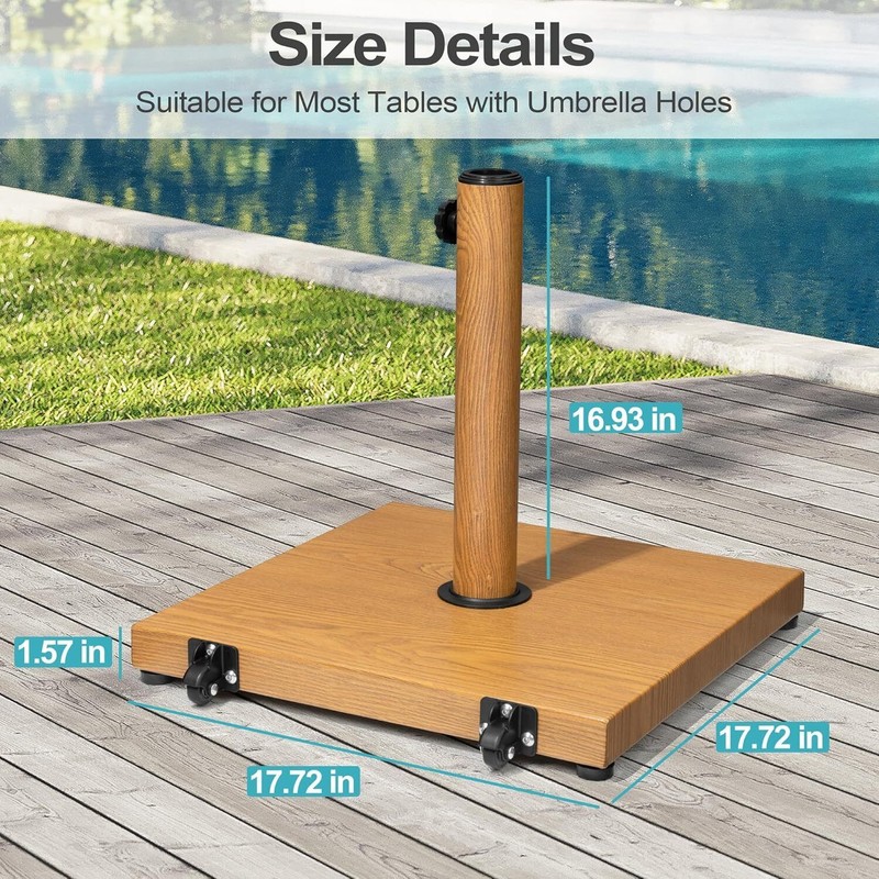 No Brand Patio Umbrella Base 40lbs Outdoor Umbrella Stand with Wheels, Heavy Duty Square
