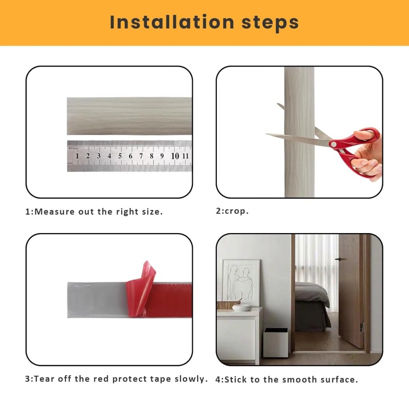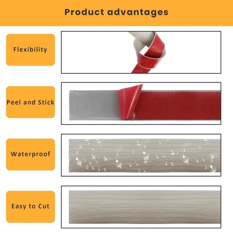 - Floor Transition Strip: Self Adhesive:Peel and stick designed strong self-adhesive Floor transition strip is easy to cover gaps, cracks and damaged corners, which just need to apply with firm pressure, no extra tape required.
