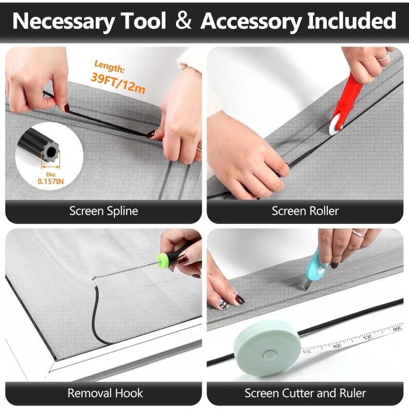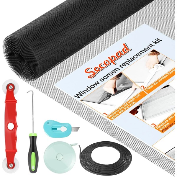 - Easy To Install: Secopad window screen repair kit includes necessary tools and accessories: screen spline, screen roller, removal hook, screen cutter and ruler. These make it easier and faster to replace while helping you save money and time