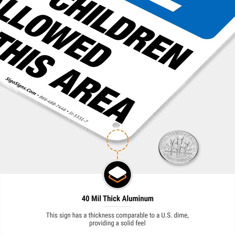 No Children Allowed in This Area, OSHA Sign, 10x7 Inches, Rust Free .040 Aluminum, Fade Resistant, Indoor/Outdoor Use, Made in USA
