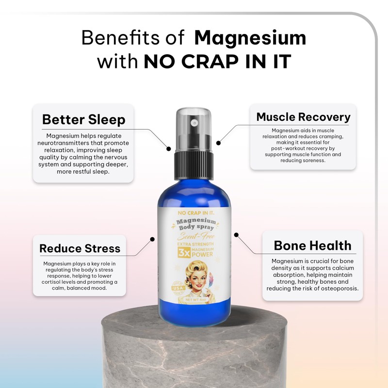 No Crap In It Magnesium Spray, Triple Action!- Your Way to Wellness | Immediate Relief with Our Unique Magnesium Glycinate,Citrate, Chloride Blend Spray (Scent Free)