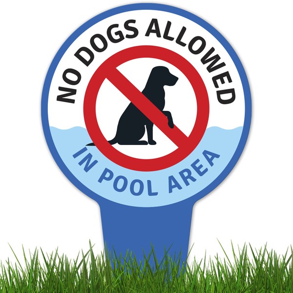 No Dogs Allowed in Pool Area with Stake Sign, 7x13 Inches Round Shape, Aluminum Composite Made in USA