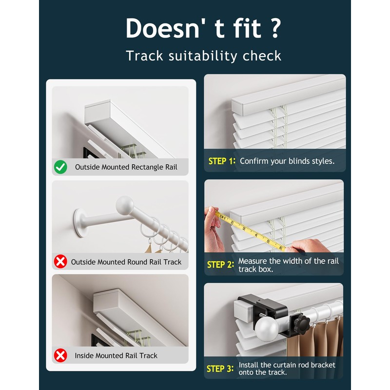 - Compatibility Check: To ensure your shopping experience, please first check if your track shape and size is compatible with Mimiio curtain rod bracket.