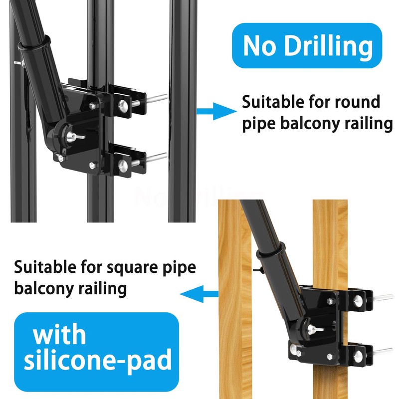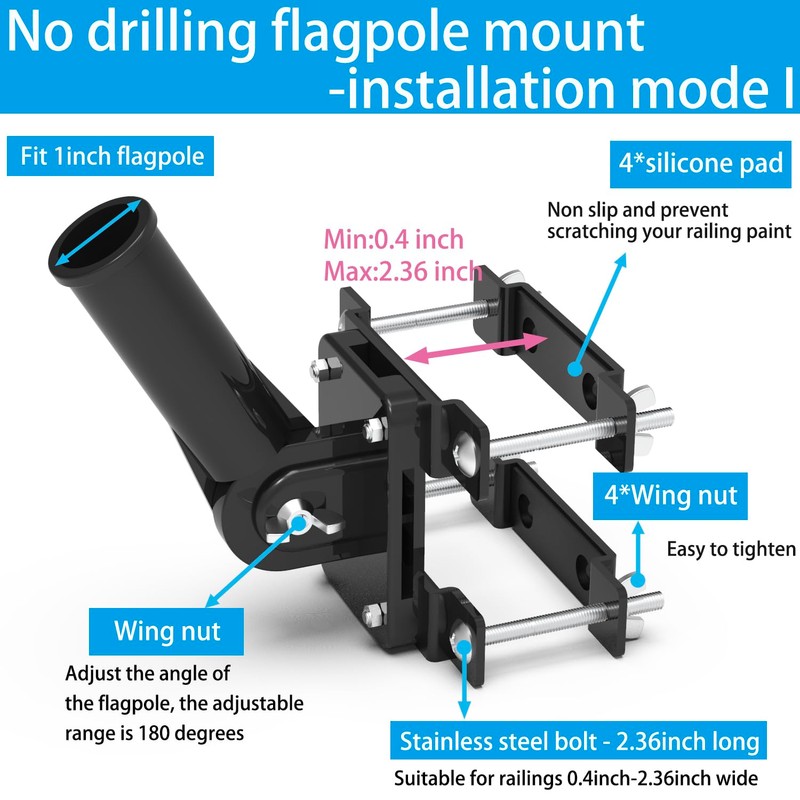 No Drill Flag Pole Holder for Railing,Flag Pole Mount for Porch & Fence Rail, Apartment Balcony,Square or Round Railing-Two Installation Methods-with Silicone Pads,for 1” flagpole