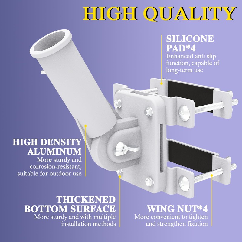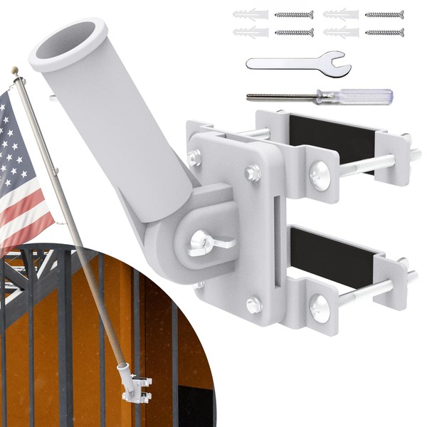 No Drill Flag Pole Holder for Railing,for 1" Flagpole, Flag Pole Mount for Porch & Fence Rail, Apartment Balcony,Square Railing,Tangle Free and Two Installation Methods-with Silicone Pads (white)