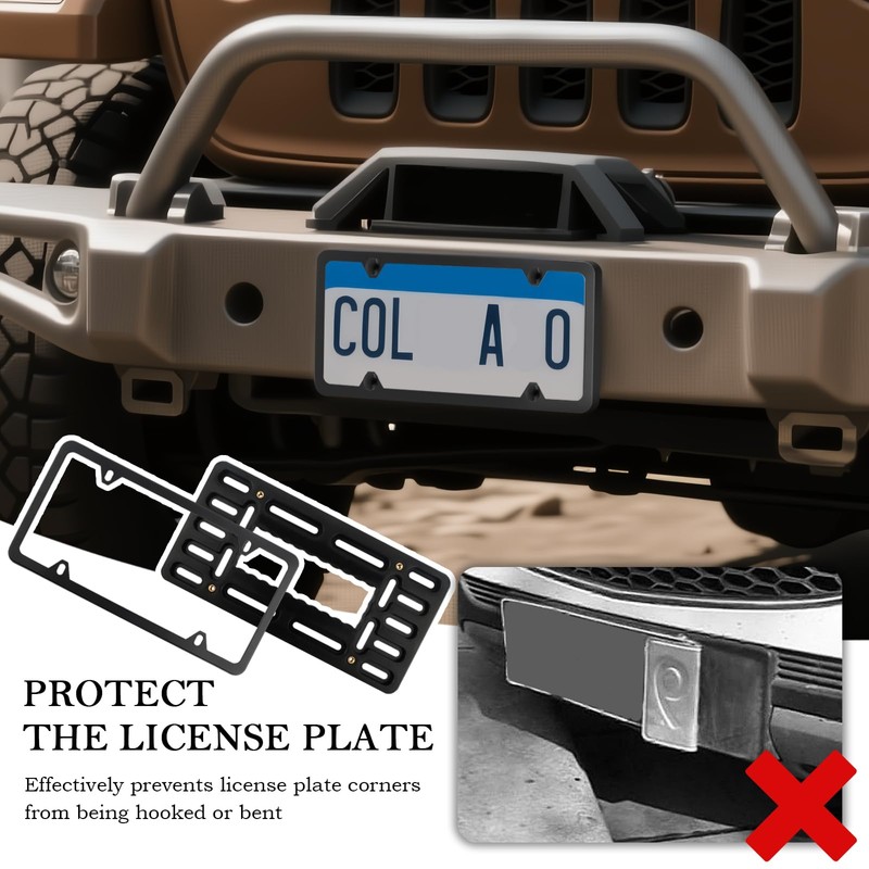 1. Front License Plate Bracket: The special design of the front license plate bracket can solve the problem that your vehicle's front bumper doesn't have drilled holes or only has two drilled holes, easy to install the license plate