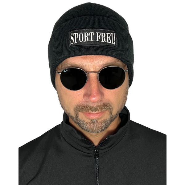 No Face No Name Sport Frei! Hat in Black I Unisex I Embroidered Patch to Change I Beanie Knitted Hat Winter Hat, black