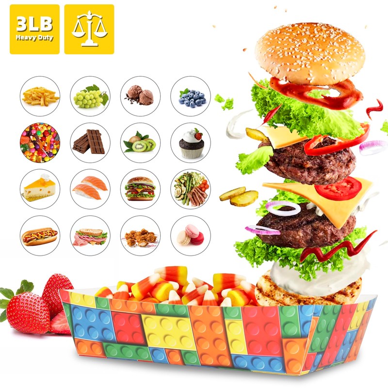 • Premium Quality Material: Building BlockThe Building Block paper trays are made of quality cardboard, our Building Block paper trays are disposable and grease-resistant, making them an ideal choice for serving food at Building Block parties, birthdays, and more