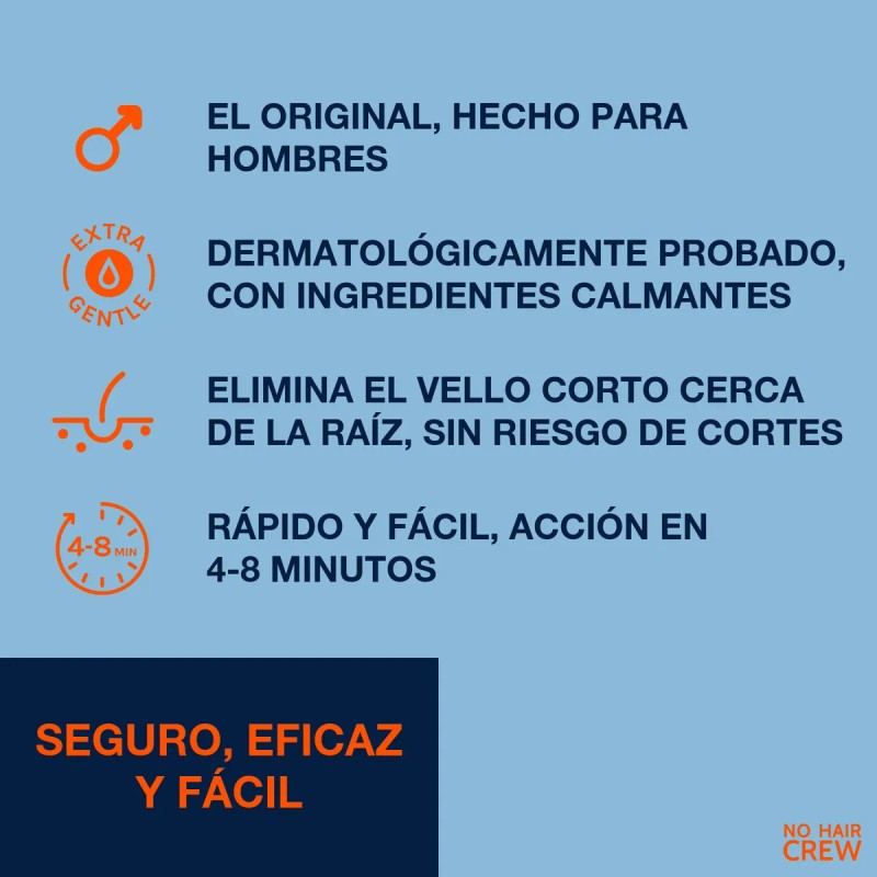 Una opción suave para eliminar el vello de tus zonas íntimas (ingle, escroto, gluteos y área perianal). Sin riesgo de cortes y con una mayor duración que el afeitado. Leer siempre las advertencias e instrucciones de uso en el folleto dentro del envase. Mantener fuera del alcance de los niños.
