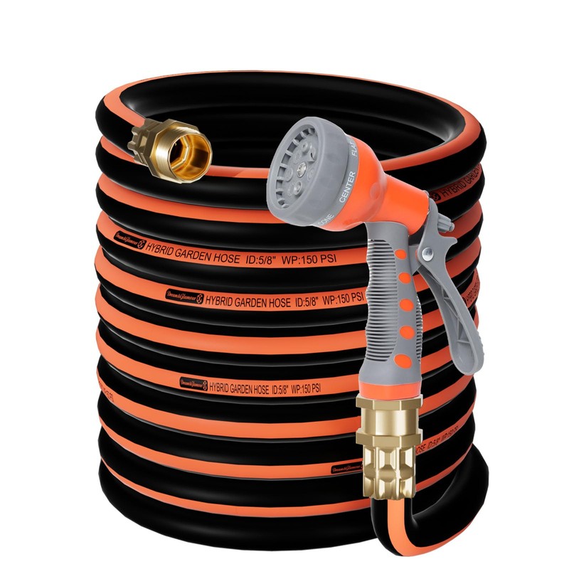- 【Extra Thick】 Compared to other rubber hoses, our 2023 upgraded garden hose has 40% thicker wall.Extra thick design with high wear resistance and flexibility, very durable.