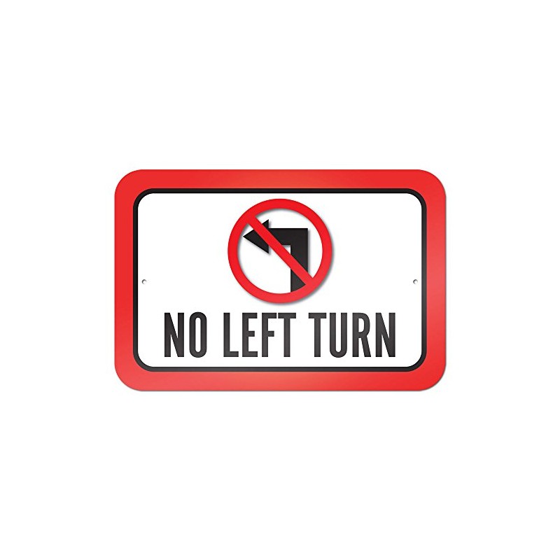 No Left Turn 22.9cm x 15.2cm (9" x 6") Metal Sign