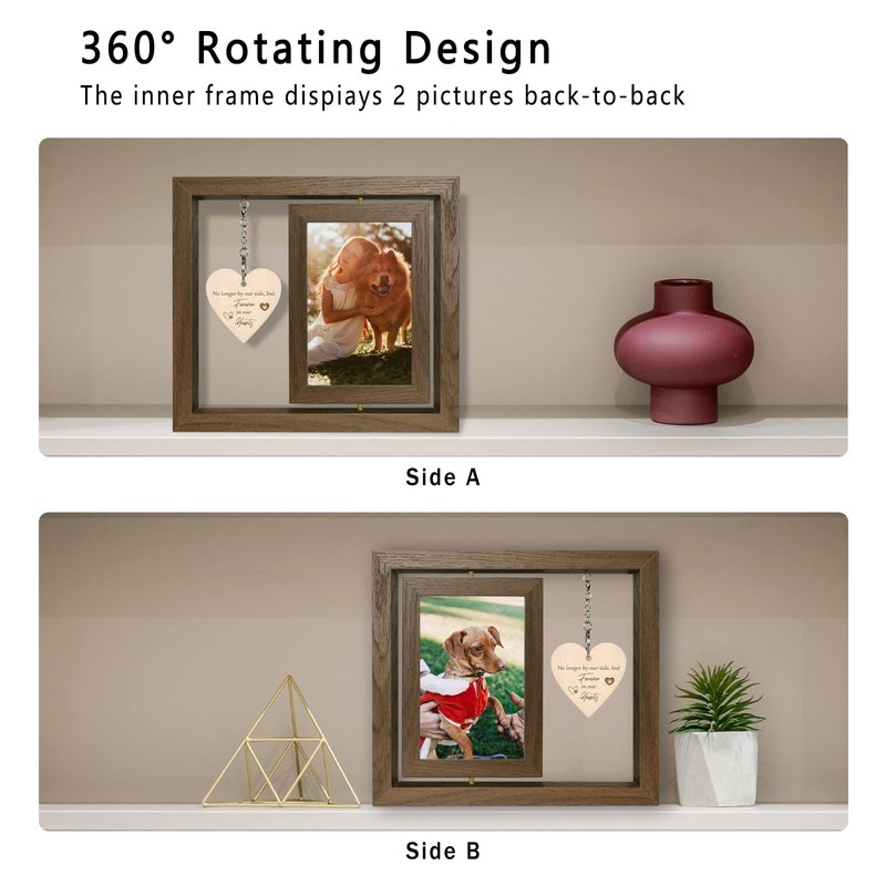 - Sturdy Wood Material: 360 Degrees rotating floating photo frames are made of lightweight wood with a unique design vintage wood texture finish and real glass cover, make a lovely pet memorial gift for someone who’s recently dealt with the loss of a beloved pet to provide a little comfort