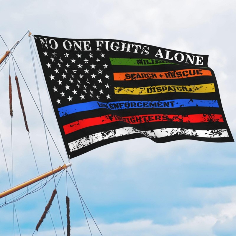 No One Fights Alone Multi Thin Line First Responder Flag 3x5 ft Banner Indoor Outdoor Perfect Decoration