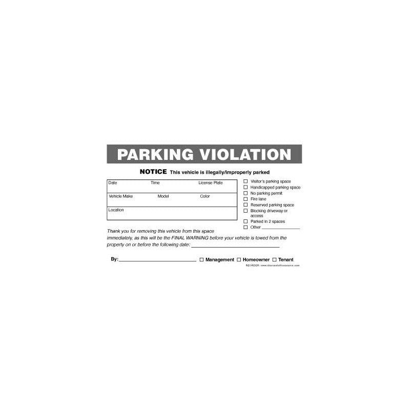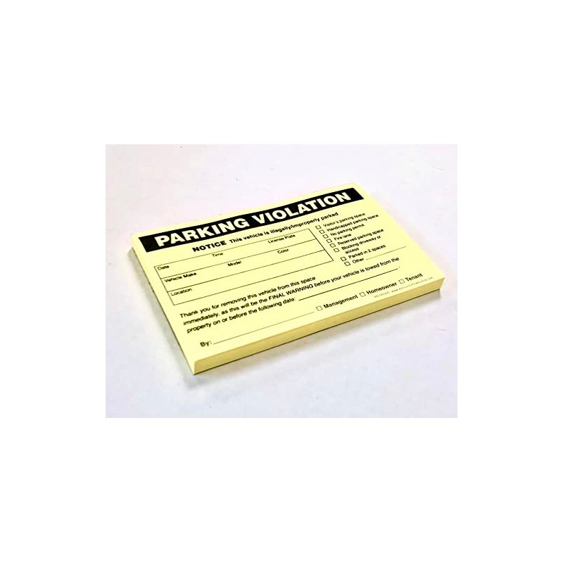 "No Parking" Car & Truck Illegal Violation Warning Form (100 Sheets) Per Pad.