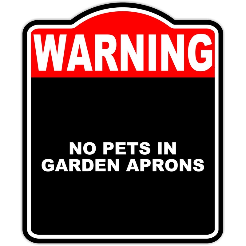 NO PETS IN GARDEN APRONS Warning Red Black Aluminum Composite Sign 15 x 18 inches