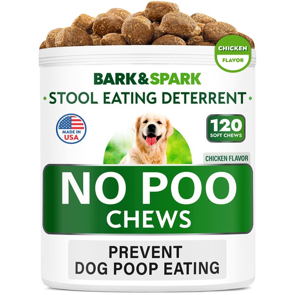 NO Poo Treats - Prevent Dog Poop Eating - Coprophagia Treatment - Stool Eating Deterrent - Probiotics & Enzymes - Digestive Health + Breath Aid - Made in USA - (120 Ct - Chicken)