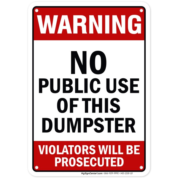 No Public Use of This Dumpster, Violators Will Be Prosecuted Sign, 7x10 Inches, 55 mil thick HDPE (high density polyethylene), Made in USA by My Sign Center
