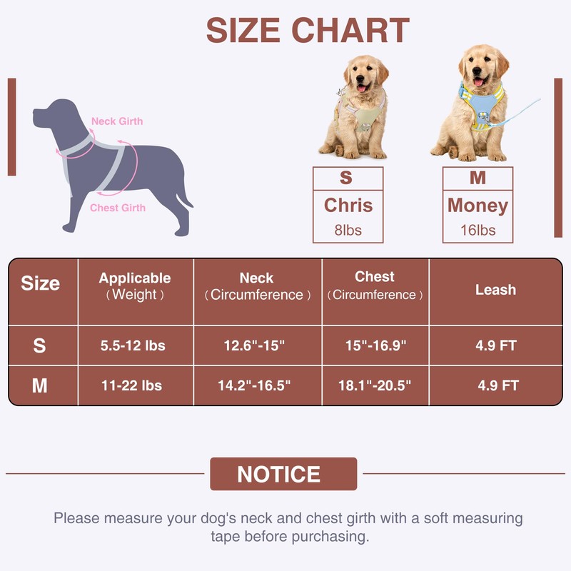 - Bonus 4.9FT Leash Included: Comes with a matching leash featuring a 360° rotating clasp to prevent tangles and provide smooth, controlled walking. Perfect for daily walks, park play, vet visits, or shopping trips