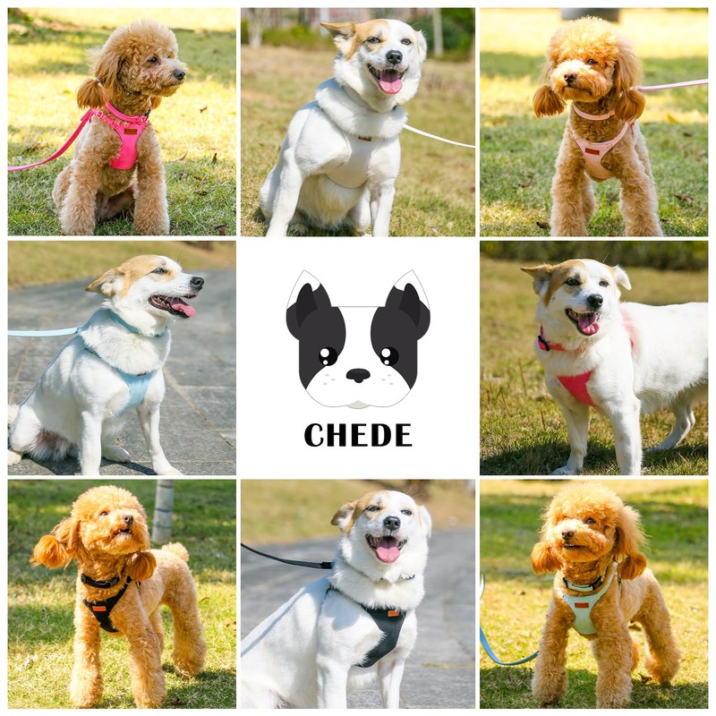 - Comfortable & High-Quality Dog Harness: CHEDE's dog harness set is made with a soft and breathable material that is gentle on your dog's skin. The exquisite hardware is sturdy, water-resistant, and rust-proof, ensuring durability and longevity. This harness is a perfect blend of comfort and high-end quality.