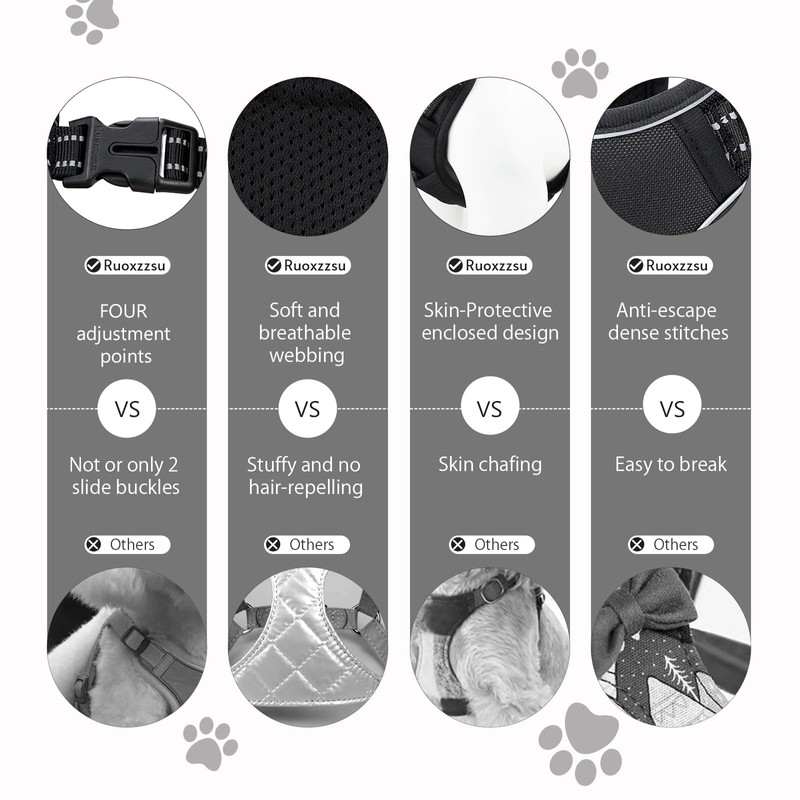 • Easy to Put On and Off - Ruoxzzsu dog harness with adjustable chest belt and FOUR fast-release buckles to ensure your dog's safety and create a custom fit for your dog. Size XL: Neck 58-89cm(23-35in), Chest 53-99cm(21-39in).