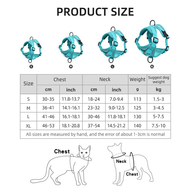 - 【Safe & Comfortable】: Sturdy buckle and D-ring connected to leash, this safety harness gives you the confidence to walk your pet in the busiest of environments.Vest-style design can evenly distribute leash pressure across the chest and shoulder to prevent choking or neck strain