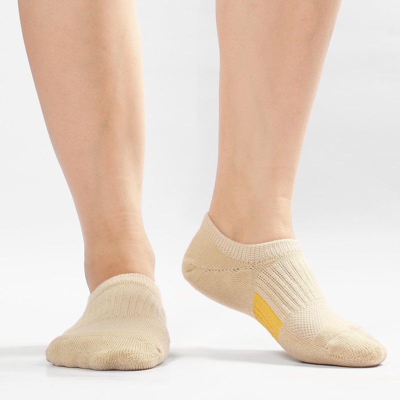 Multi performance keywords: cushioned sole \ arch support \ grippers on heel \reinforced toe & heel \ Mesh \ Cotton fabric \ Seamless Toe Closure