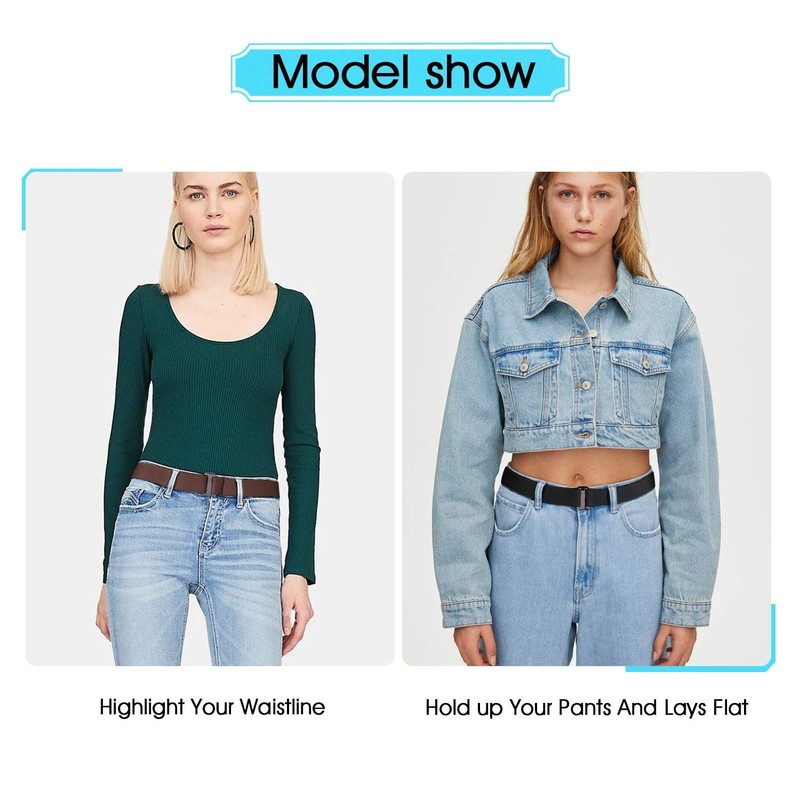 - ☘ Flat buckle--- The flat buckle is not like a bulky buckle, it lays flat so that it’s no show when you wear a tighter-fitting top. Just put the clasp into the belt end hole and you’ll get a perfect no show flat buckle belt for your pants.