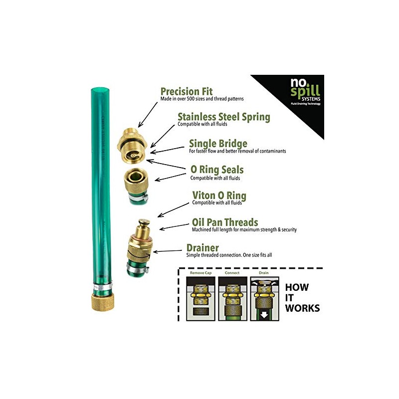 - EASE of USE: All No-Spill oil drain plugs work to drain with gravity or suction systems.
