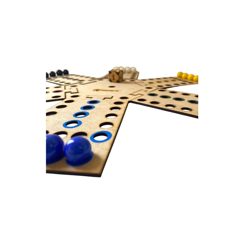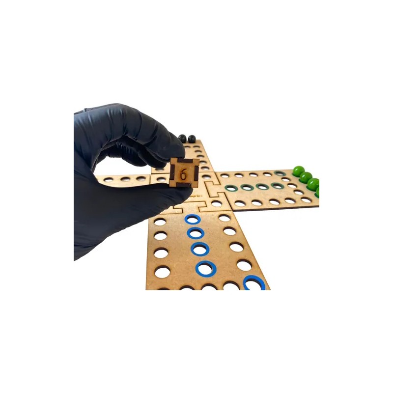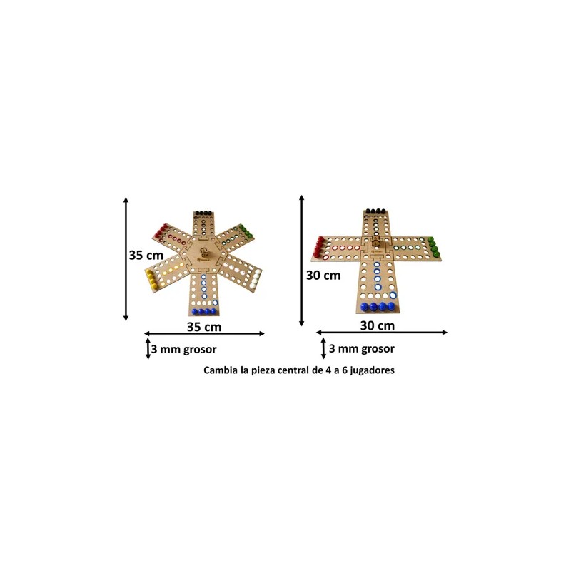 Juego no te enojes para 6 personas o 4 , Cuenta con 6 apartados para adaptar en las 2 bases que contiene ( base para 4 y base para 6 personas ). El material de los apartados y las bases es madera , incluye un dado y 24 canicas de cristal ,Se empaca de manera compacta para trasládalo en tu bolsa, El color del morralito puede variar de acuerdo a disponibilidad