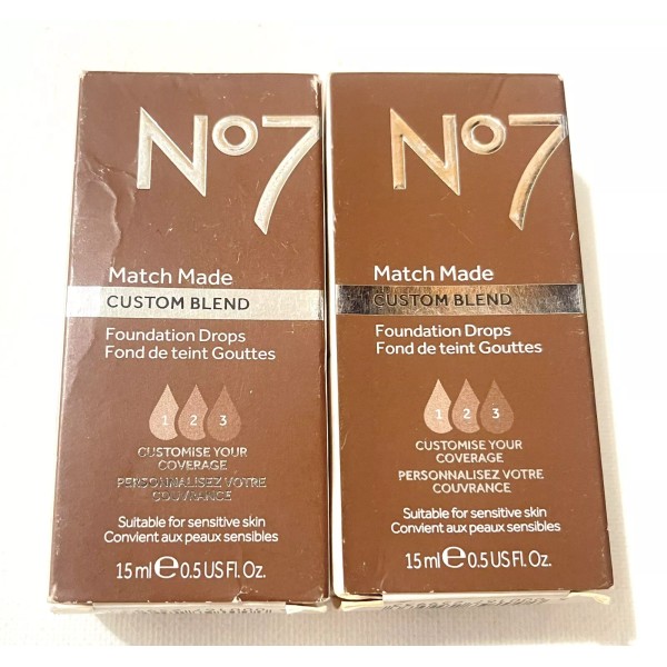 2 pack, No7 MATCH MADE Custom Blend Foundation Drops .5oz - WALNUT.