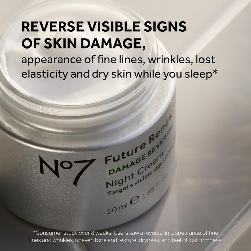 No7 Future Renew Damage Reversal Night Cream - Anti Aging Face Moisturizer - Infused with Peptide Technology to Reverse Visible Signs of Damage - Skin Barrier Repair for Dry Skin (1.69 Oz)