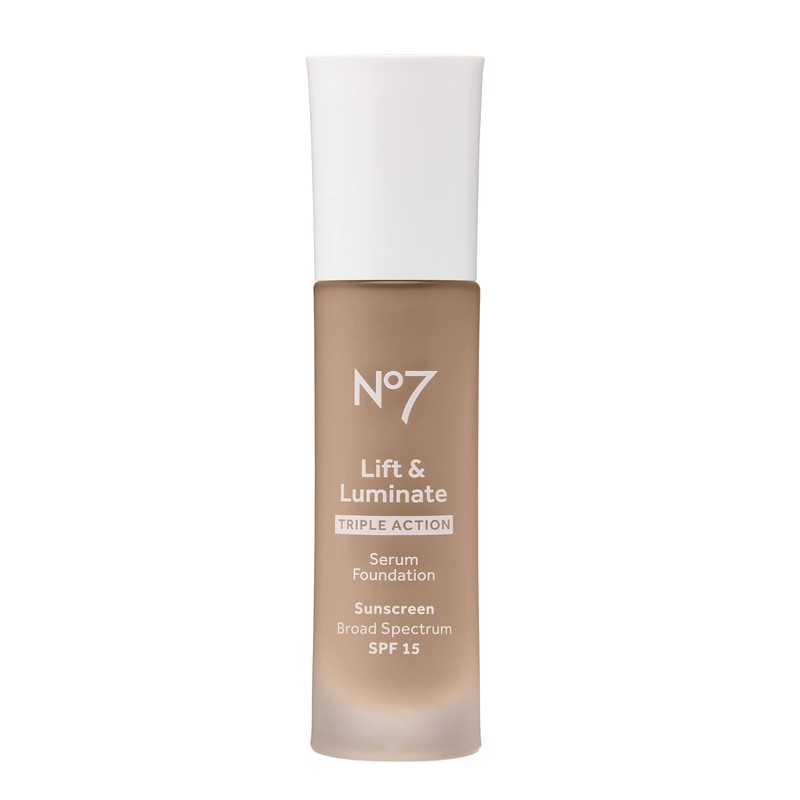 No7 Lift & Luminate Triple Action Serum Foundation - Calico - Liquid Foundation Makeup with SPF 15 for Dewy, Glowy Base - Radiant Serum Foundation for Mature Skin (30ml)