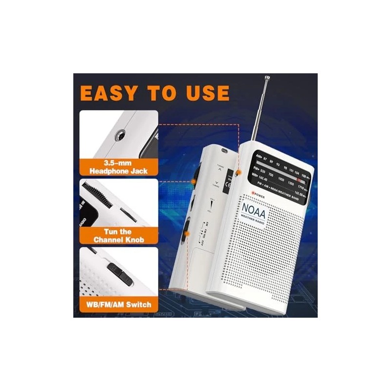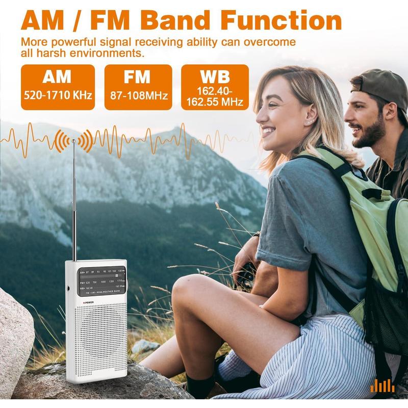 ?Portable Radio?This weather radio weighs 125 grams. Lightweight and compact, this portable radio can be carried with you on hiking, camping, and other activities, and can easily fit in your pocket or backpack, for home or on the go. by 2 (not included), you can easily find it in the shop or at home, and you don't need to worry about even if there is a power outage.