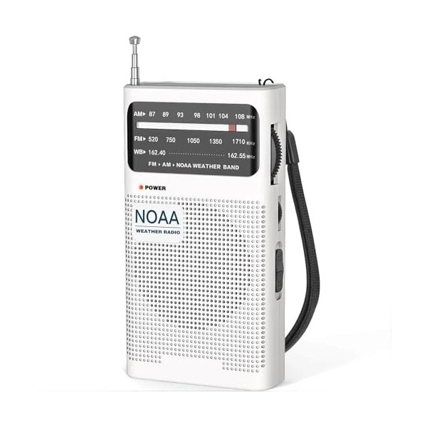 NOAA Weather Radio with Best Reception, AM FM Portable Radio with 2 New-White