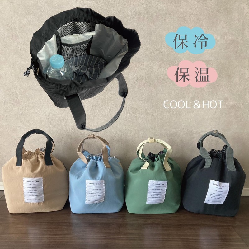 - A convenient lunch bag that keeps you cold, warm, and lightweight The interior has a mesh pocket (1 pocket), so it is convenient for storing ice packs. The opening is wide and easy to use drawstring type. The bottom is wide and sturdy and stands up on its own. The gusset is firm so it is small, but it can fit more than it appears. Holds 6 cans of 350 oz (350 g)