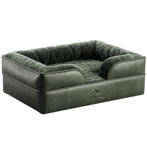 NOAH & PAW Giant Dog Bed XXL, 55x45x11 Inch, Orthopedic Dog Beds, Eggshell Memory Foam Infused with Cooling Gel, Inner Cover, Waterproof, Machine Washable (Vegan Leather Sofa Collection)
